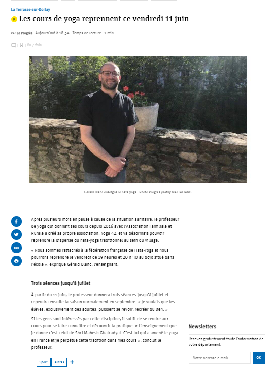 Concert 19/12/2022 Terraïa 13 Terraïa 12 Le Progrès – Juin 2021 Association Yoga 42 Hatha Yoga Traditionnel | Méditation La Terrasse sur Dorlay - 42 Bibliographie Les Archives RGPD
